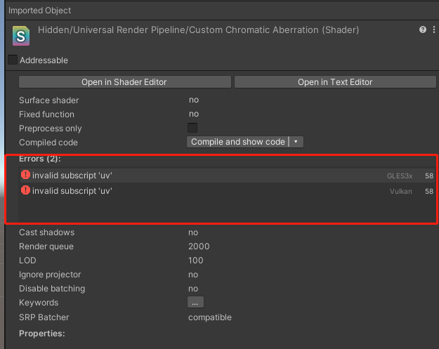 FAQ团结引擎报错invalid-subscript-uv本页总览团结引擎报错invalid subscript 'uv' 问题描述 解决方案 问题描述 使用团结引擎打开游戏工程后,控制台和Shader均出现如下报错信息: invalid subscript 'uv' 解决方案 先将varying的uv属性修改为textcoord,再在代码中将input.uv替换为input.textcoord。