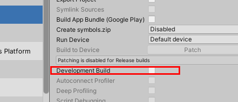 • 若不勾选Development Build,将依赖../Variations/il2cpp/release。